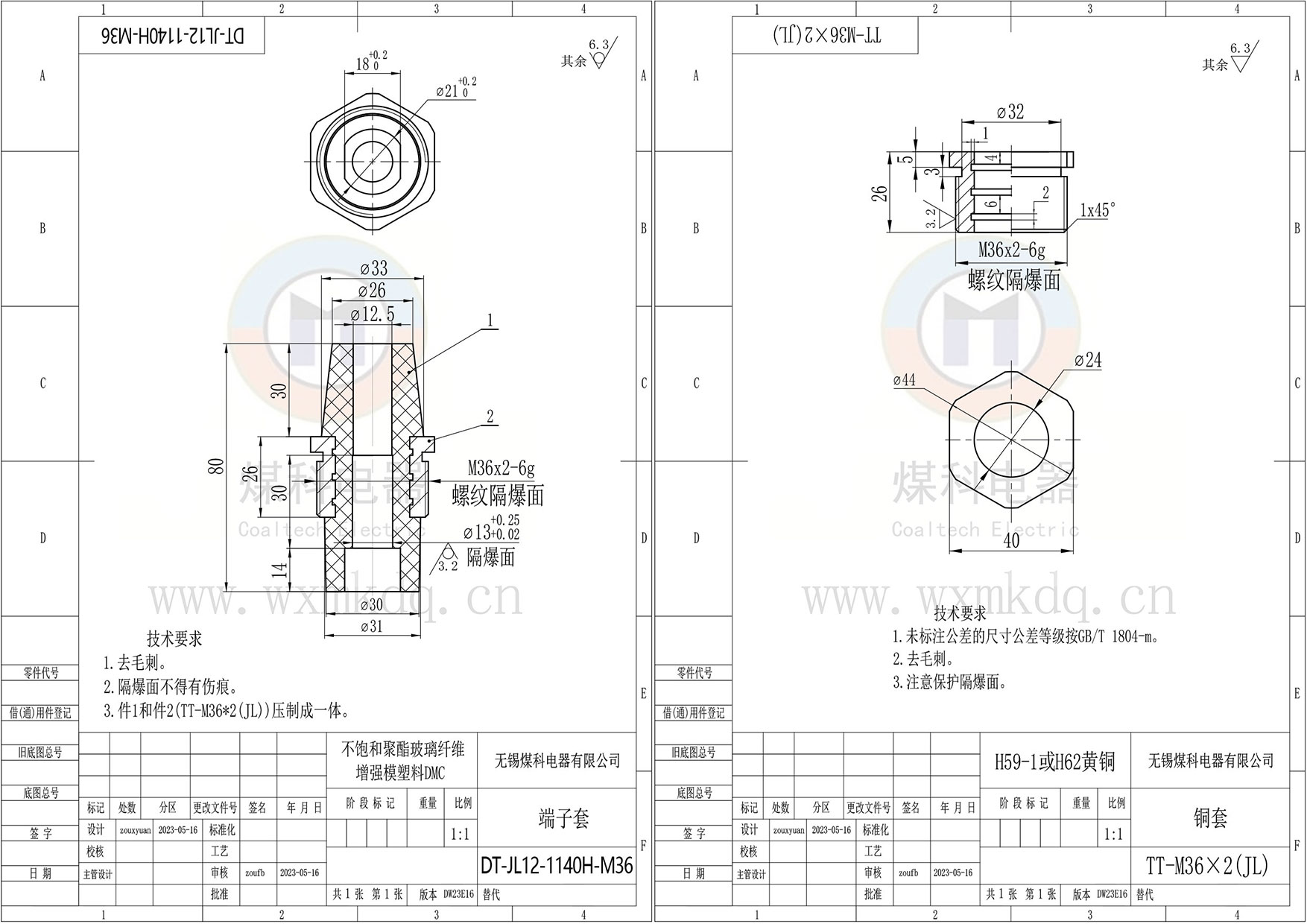 ◆ 安裝尺寸:M36x2 隔爆螺紋;
