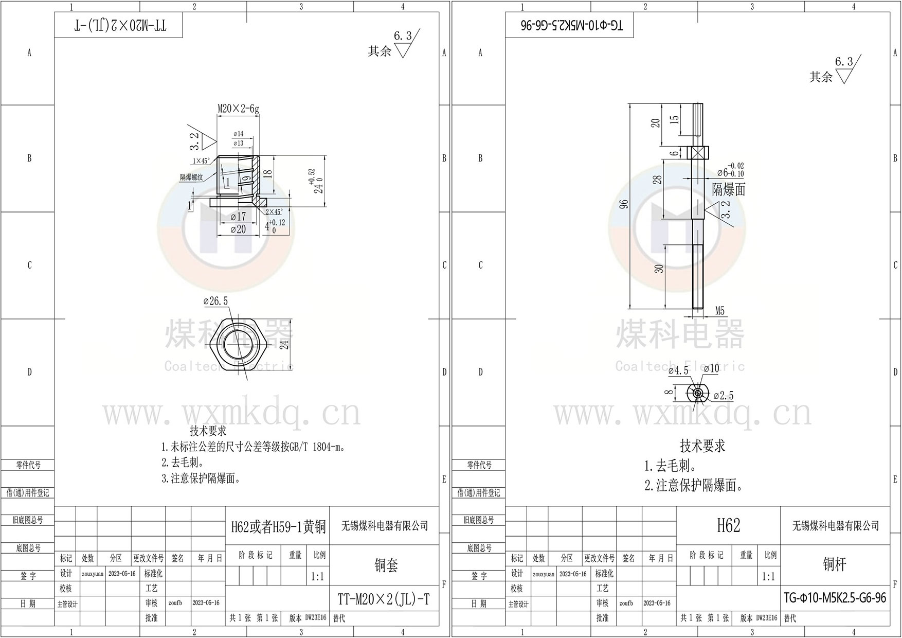 ◆ 安裝尺寸:M20x2 隔爆螺紋;