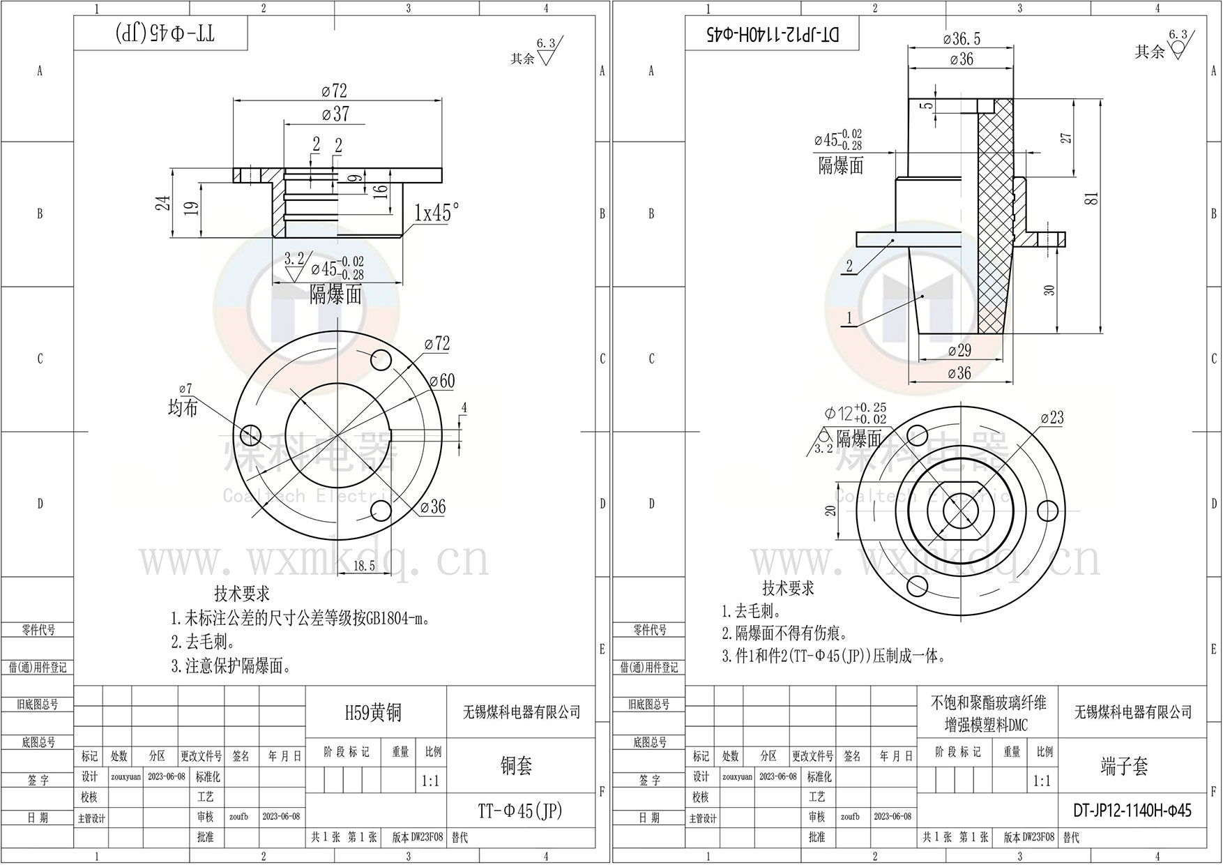◆ 安裝尺寸:Φ45 隔爆銅套;