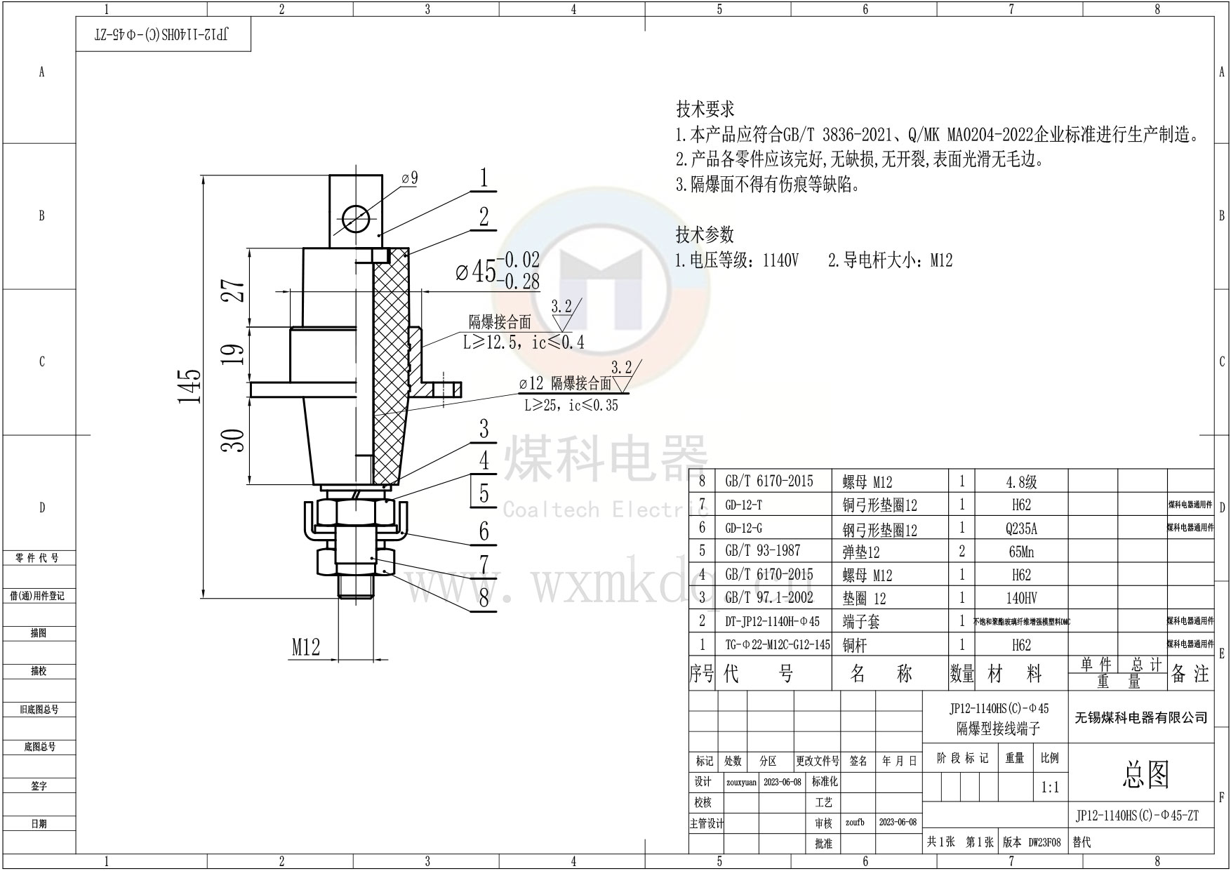◆ 電壓等級:1140V,建議使用在電壓≤1140V的場(chǎng)所;
