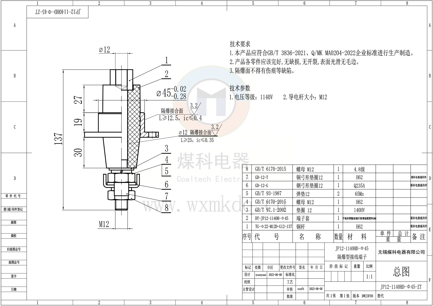 ◆ 電壓等級:1140V,建議使用在電壓≤1140V的場(chǎng)所;