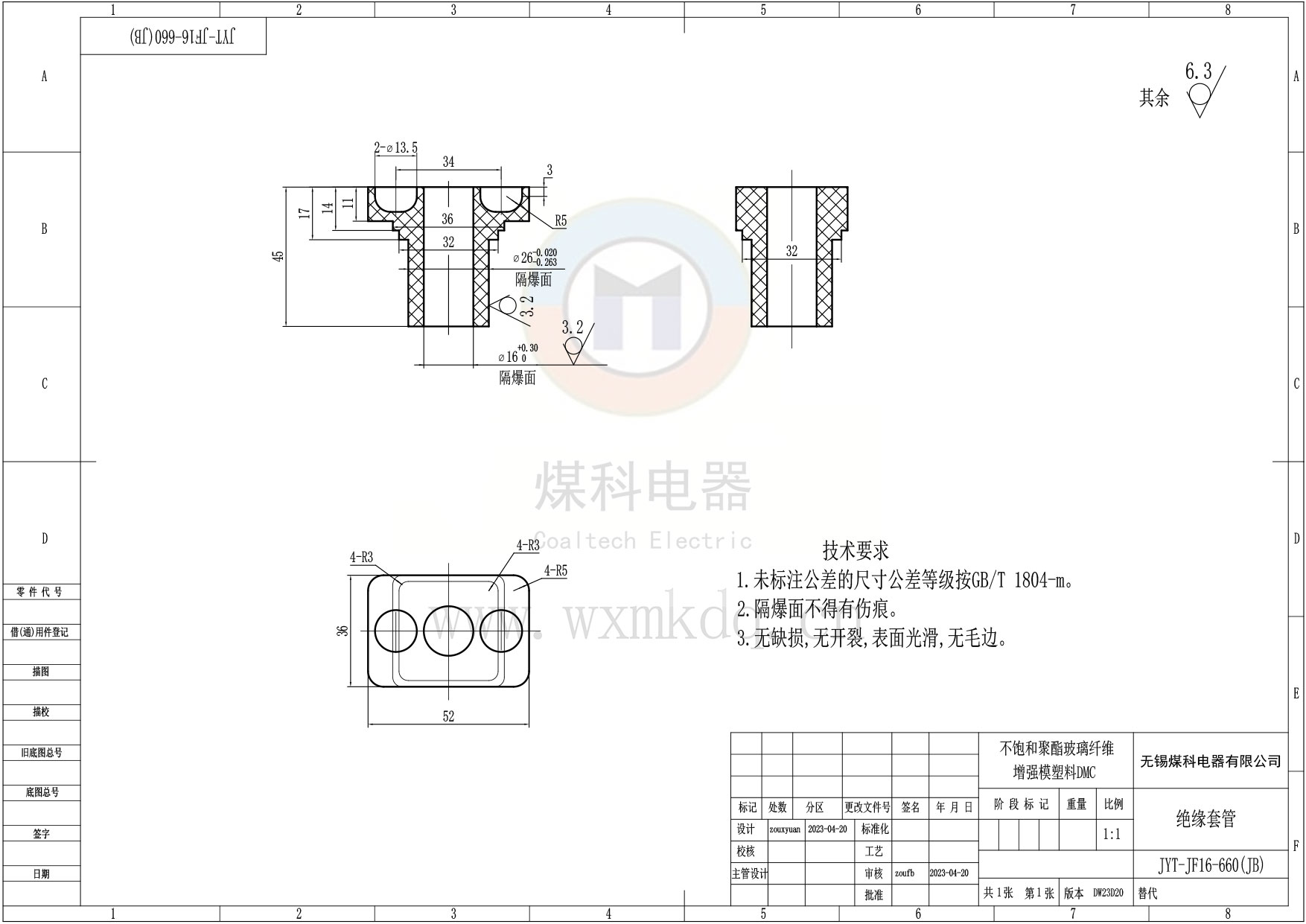 ◆ 絕緣材料:不飽和聚酯玻璃纖維增強模塑料(DMC),通過(guò)火焰燒蝕試驗 !