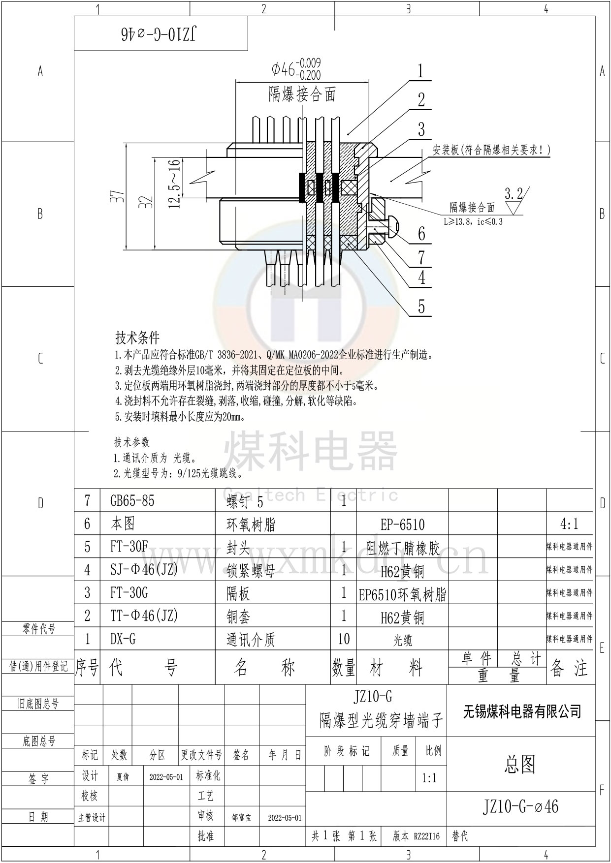 下一篇:JZ10-G-Φ42隔爆型光纜穿墻端子